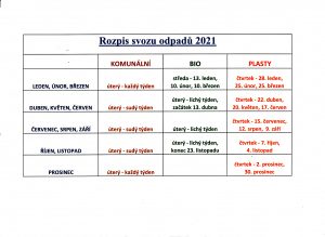 ROZPIS SVOZU ODPADŮ v roce 2021