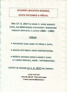 • Sjezd rodáků v Lipci – pátrání