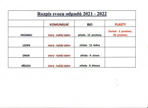 Svoz komunálního odpadu prosinec 2021 – březen 2022