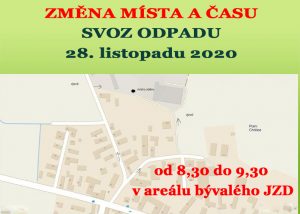 Změna svozu VN odpadu – v návaznosti na epidemii se sběr VNO přesunuje do areálu bývalého JZD